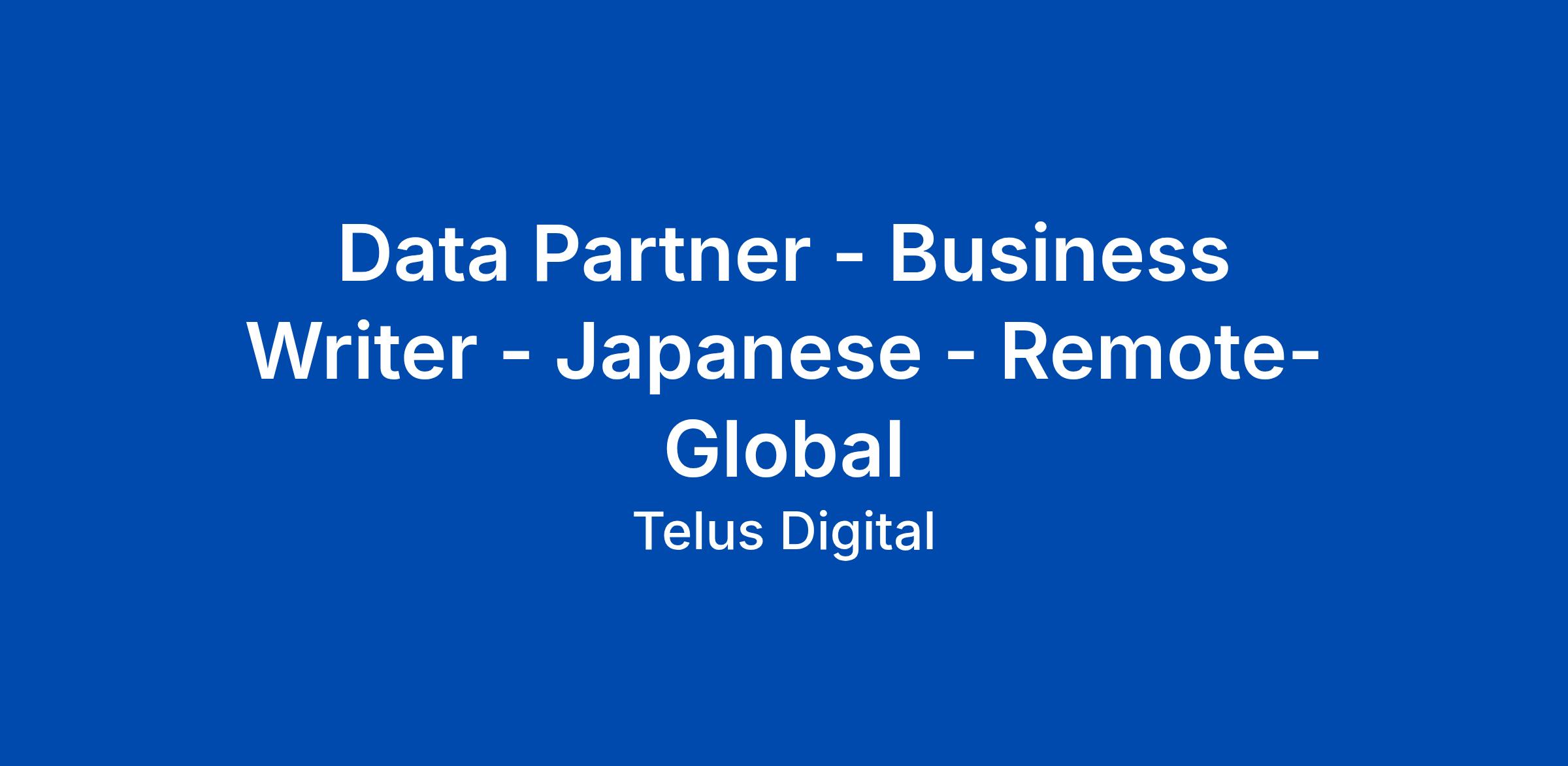 Data Partner - Business Writer - Japanese - Remote- Global