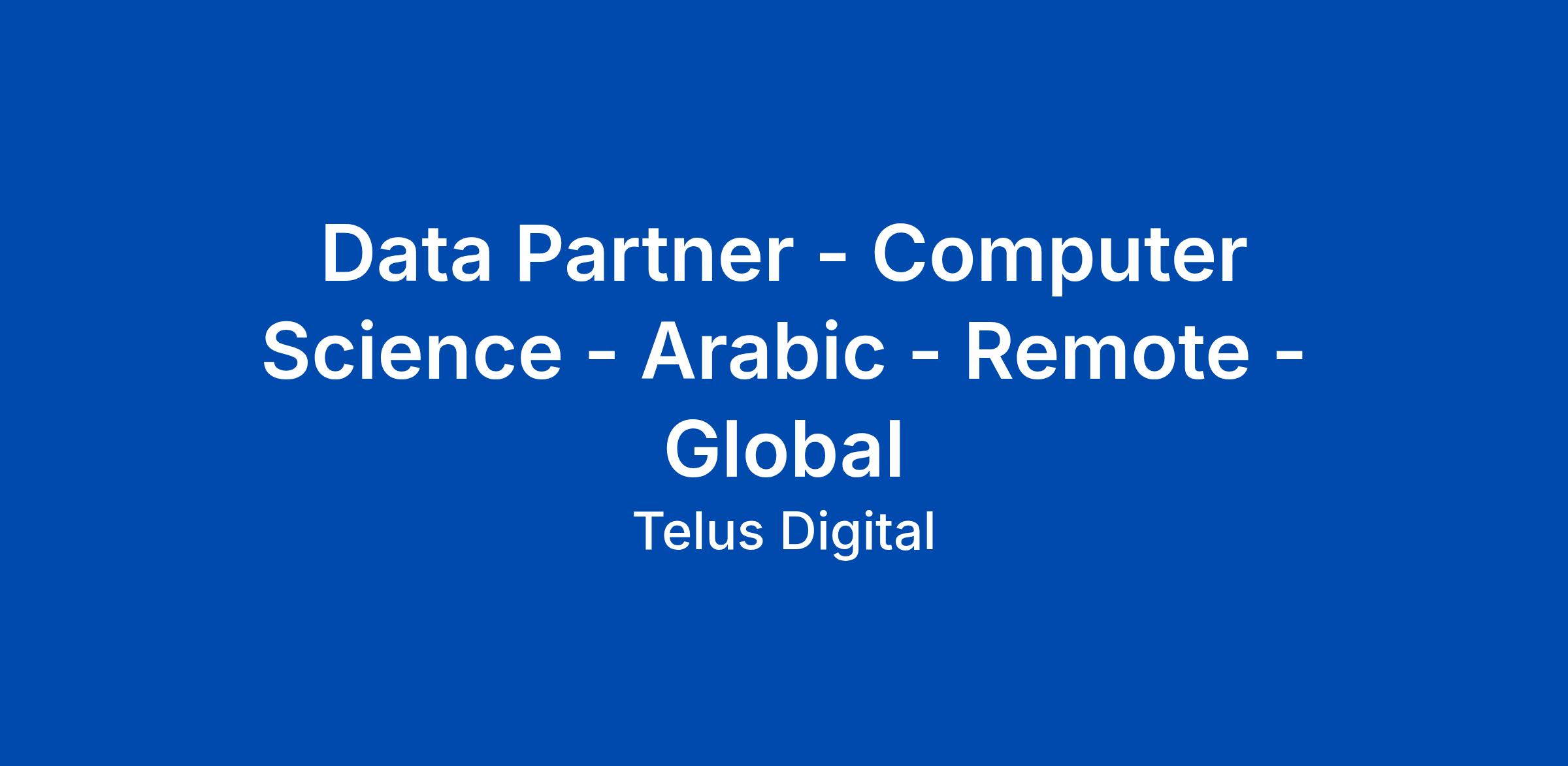 Data Partner - Computer Science - Arabic - Remote - Global