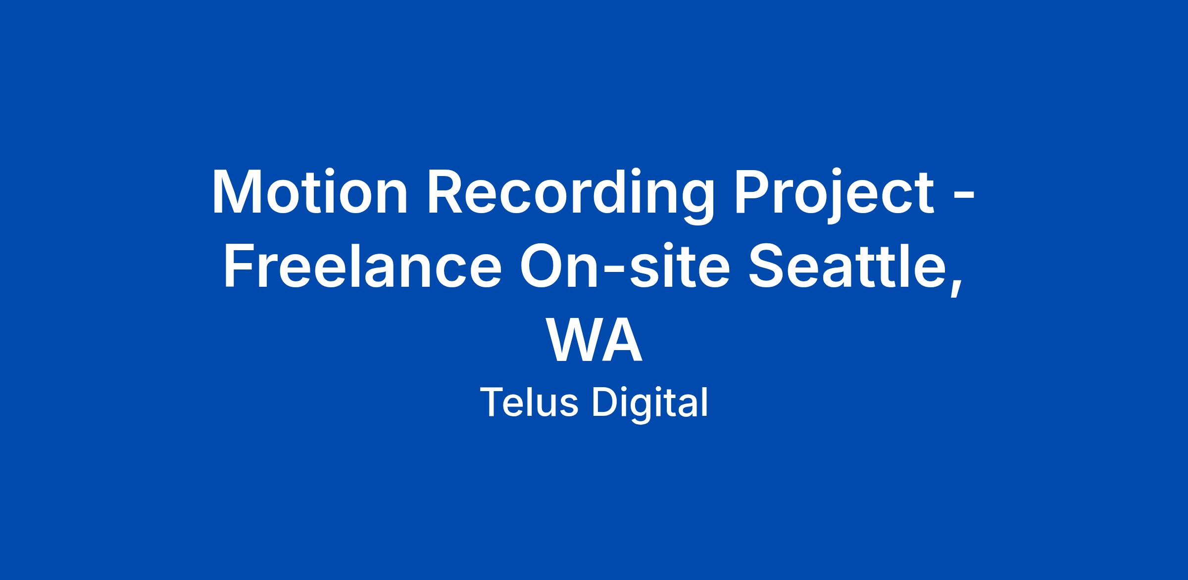 Motion Recording Project - Freelance On-site Seattle, WA